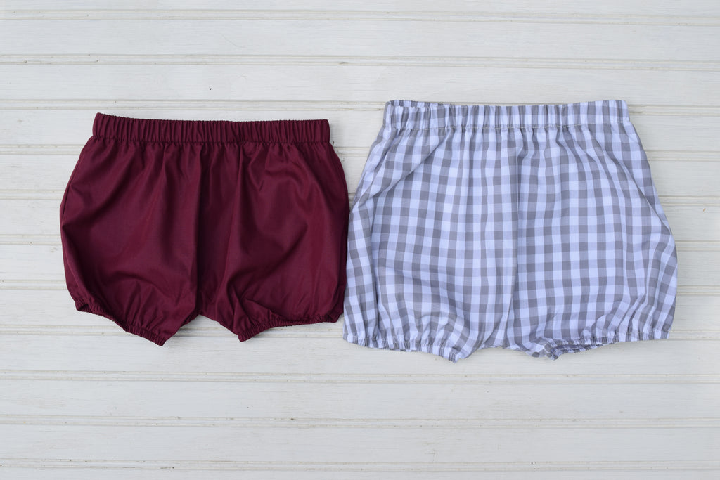 Make sure your little boy or girl is ready to cheer on their favorite team in these precious bubble shorts which come in maroon and grey/white buffalo check (lined)!