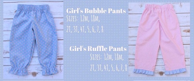 Pants come in two options: Ruffle Bottom and Bubble